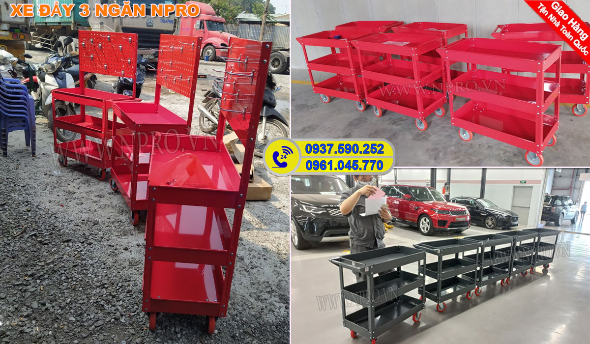 2 mẫu xe đẩy dụng cụ cơ khí 3 ngăn cao cấp, giá rẻ tại NPRO.VN để bạn tham khảo