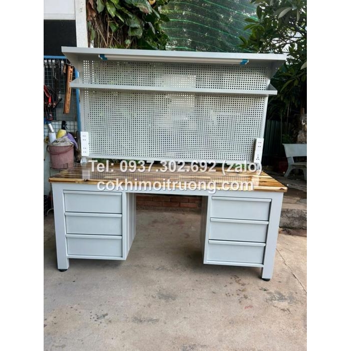 Bàn nguội cơ khí mặt gỗ kết hợp bảng treo