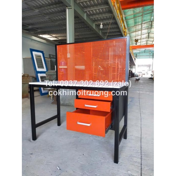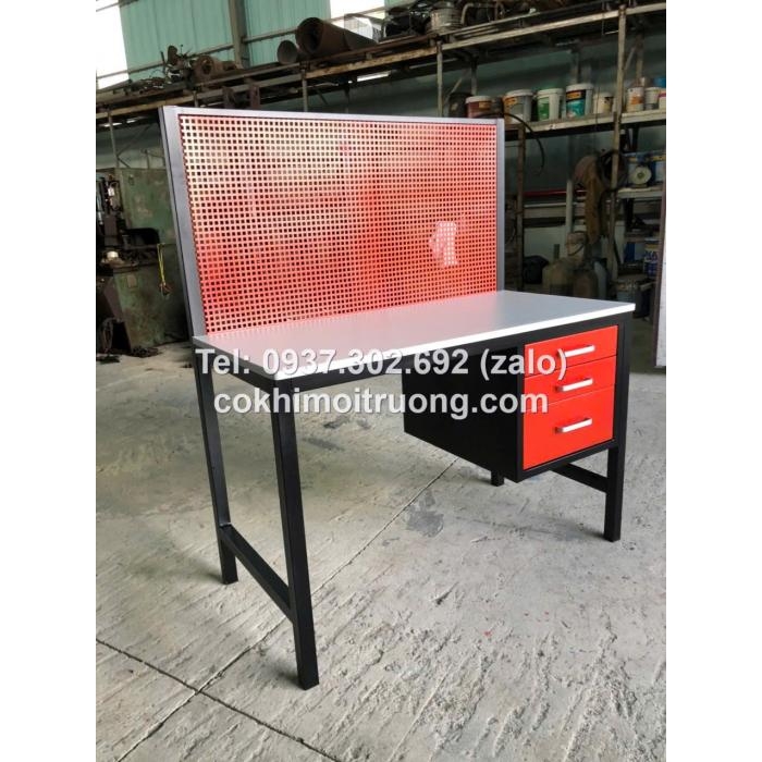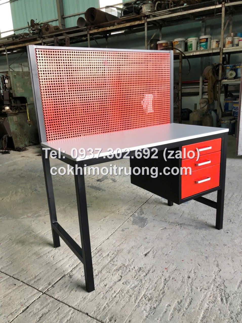 - Bàn thao tác dùng để sửa đựng đồ nghề khi gia công cơ khí, hai tủ ở hai bên dùng để đựng hồ sơ và giấy tờ, ơ giữa bàn nguội được thiết kế bảng treo dụng cụ rất tiện lợi cho quá trình sử dụng.