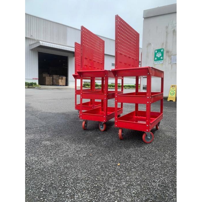 Xe đẩy 3 ngăn kết hợp khay linh kiện, Xe đẩy dụng cụ 3 ngăn có 1 ngăn kéo và tấm treo đồ nghề là một dòng xe đẩy đựng dụng cụ dùng trong garage ô tô, tiệm sửa xe chuyên nghiệp, nhà máy, gia đình,.. hiện nay. Sản phẩm được thiết kế gồm 2 ngăn chứa đồ nghề để lộ thiên, 1 ngăn kéo có khóa và 1 tấm treo đồ nghề giúp việc sắp xếp..