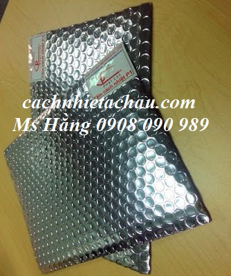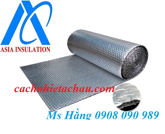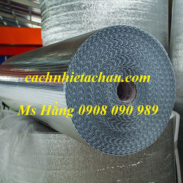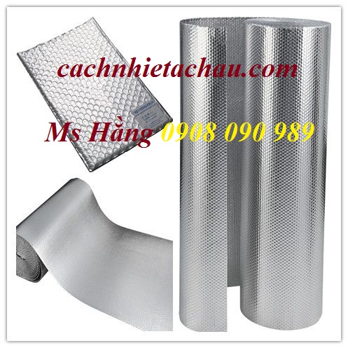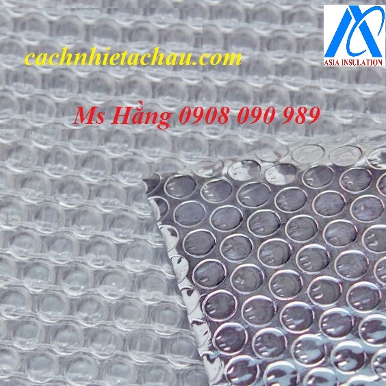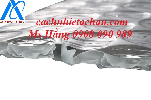 Cấu tạo gồm: Một lớp nhựa PE gồm nhiều túi khí cách nhiệt tròn ø=10mm 2 lớp màng nhôm màu sáng bạc giúp phản xạ nhiệt bức xạ