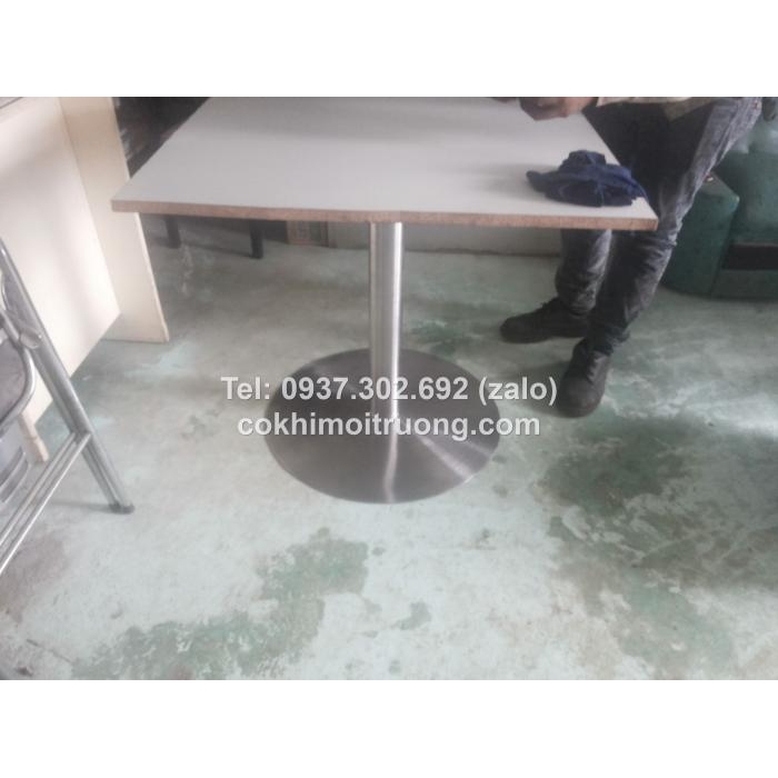 Chân bàn inox tròn- Cao: 730mm- Đường kính đế: 450, dày 3 ly- Ống phi: 76- Mặt đỡ trên vuông: 250x250, d&