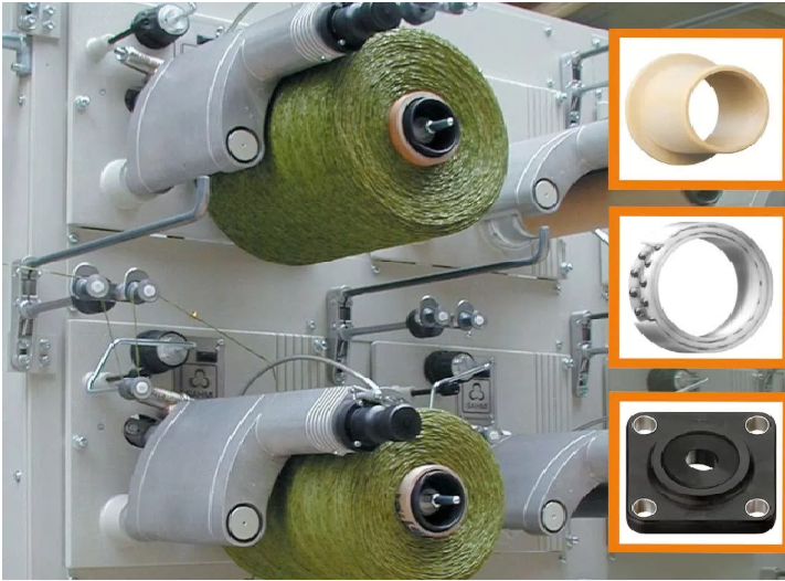 Vòng bi nhựa xiros®: Nhẹ, không bị ăn mòn và không cần bảo trì, vòng bi xiros® hoạt động hiệu quả trong môi trường ẩm ướt và hóa chất, thường gặp trong quá trình nhuộm và hoàn tất vải. Khả năng chịu nhiệt và chống hóa chất của chúng đảm bảo hiệu suất ổn định và giảm thiểu thời gian ngừng máy.