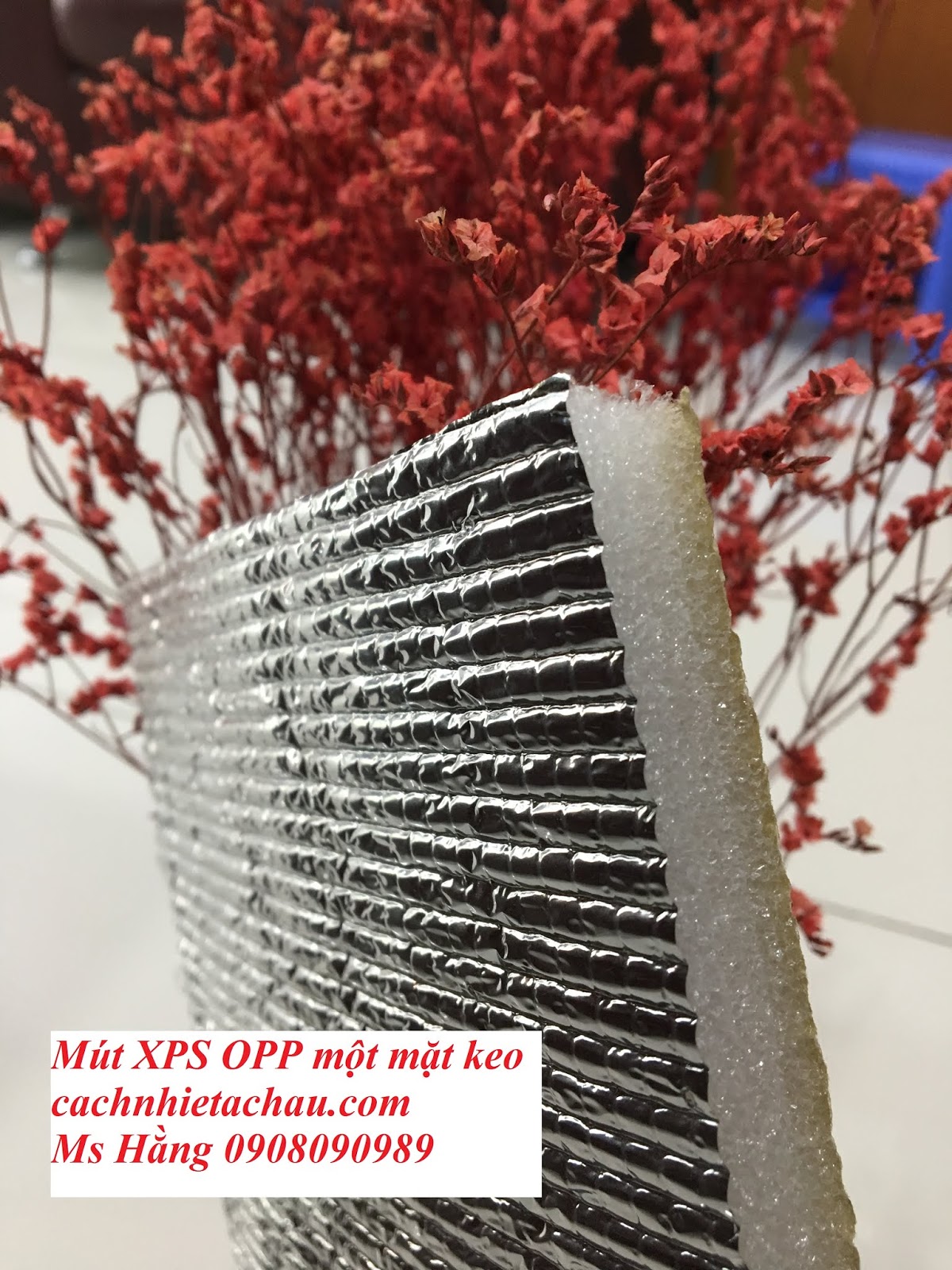 - Cấu tạo: được cấu tạo bởi liên kết, mặt ngoài là lớp bạc Matelize OPP, ở giữa là lớp PE foam, mặt còn lại là lớp băng dính siêu liêu kết POT.
