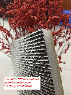- Mút xốp PE – OPP một mặt keo có ưu điểm là rất dễ dàng thi công vì có thêm một lớp keo dính ở mặt sau, chỉ cần bóc lớp giấy phủ lớp keo rồi dán nhẹ nhàng lên kính, tường, ống gió điện lạnh, khu vưc cần cản nhiệt. Bề mặt còn lại sẽ cho lớp bạc sáng bóng thẩm mỹ hoặc khi thi công chống nóng mái tôn, có thể dán ngay dưới tấm tôn trước khi lợp.