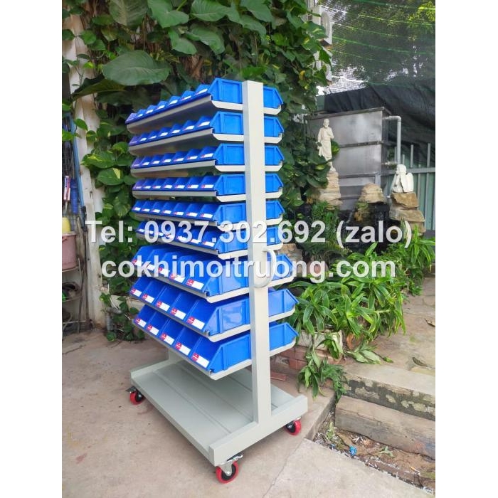 Kệ dụng cụ 2 mặt, Kệ đồ nghề để khay nhựa đựng ốc vít bulong.