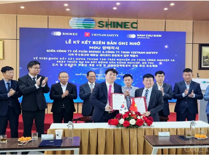 Ngày 21/2, Công ty cổ phần Shinec và Công ty TNHH Vietnam Safety (Hàn Quốc) đã ký kết biên bản ghi nhớ về việc thúc đẩy xây dựng Trung tâm trải nghiệm an toàn công nghiệp và phát triển dự án bất động sản công nghiệp, đô thị.