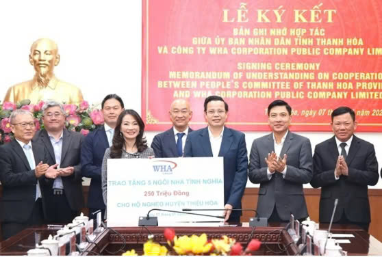 Nhân dịp này, Tập đoàn WHA đã trao ủng hộ quỹ xây dựng nhà ở cho hộ nghèo tại huyện Hoằng Hóa và huyện Thiệu Hóa, với kinh phí mỗi huyện 250 triệu đồng cho 5 hộ nghèo trên địa bàn.
