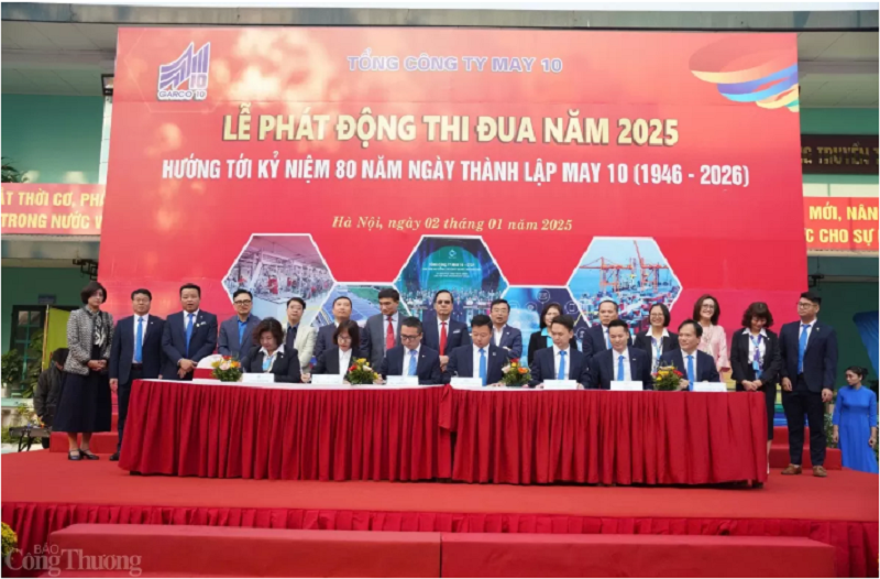| Các đơn vị của May 10 ký kết giao ước thi đua sản xuất, kinh doanh năm 2025. Ảnh: T.H |