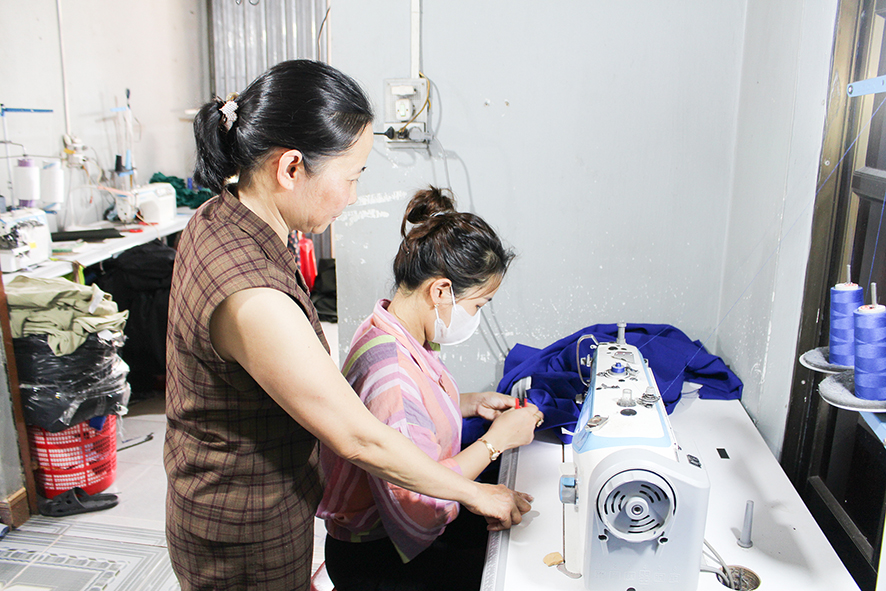 Do đó, sau khi tìm hiểu thị trường, từ năm 2019, chị Huệ đã đầu tư gần 100 triệu đồng để mua sắm máy móc, trang thiết bị rồi nhận sản phẩm may mặc của một số công ty may trong và ngoài tỉnh về may gia công. Trung bình mỗi tháng, cơ sở của chị Huệ nhận gia công từ 1.000 - 2.000 sản phẩm may mặc. Thời gian cao điểm, cơ sở sản xuất gần 4.000 sản phẩm/tháng.