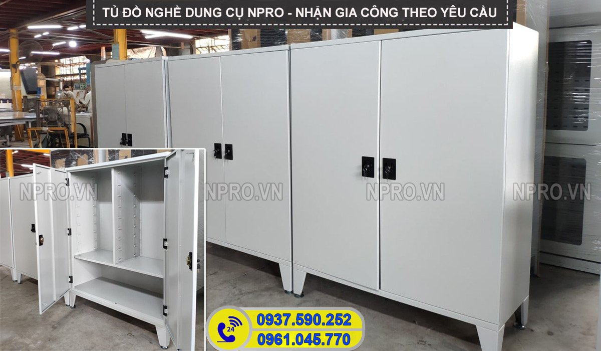 Hiện nay trên thị trường có rất nhiều tủ đồ nghề với đủ kiểu dáng, kích thước và màu sắc khác nhau. Trong đó dòng tủ đựng đồ nghề 2 cánh là mẫu tủ đồ nghề được các nhà máy, xí nghiệp, xưởng sản xuất gia công lựa chọn. Bởi nó dùng để lưu trữ, sắp xếp các dụng cụ đồ nghề một cách khoa học. Vừa tiết kiệm được không gian nhà xưởng. Vừa tiện lợi cho quá trình thao tác liên tục. Cùng NPRO.VN tìm hiểu chi tiết về dòng tủ đồ nghề 2 cánh này nhé.