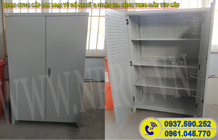 Hình ảnh thực tế 2 mẫu tủ treo dụng cụ cơ khí 2 cánh 8 ngăn tại NPRO. Nhận gia công tủ theo mẫu yêu cầu khách hàng.