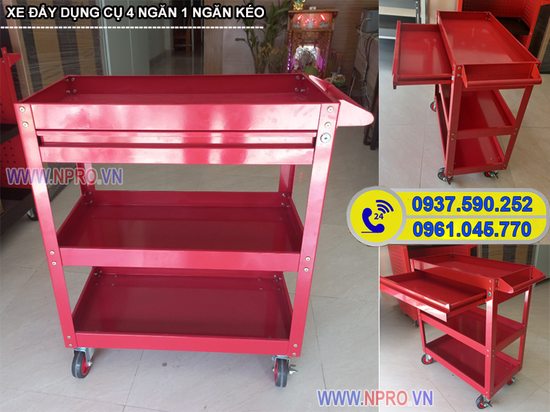 1. Xe đẩy dụng cụ 4 ngăn có 1 ngăn kéo