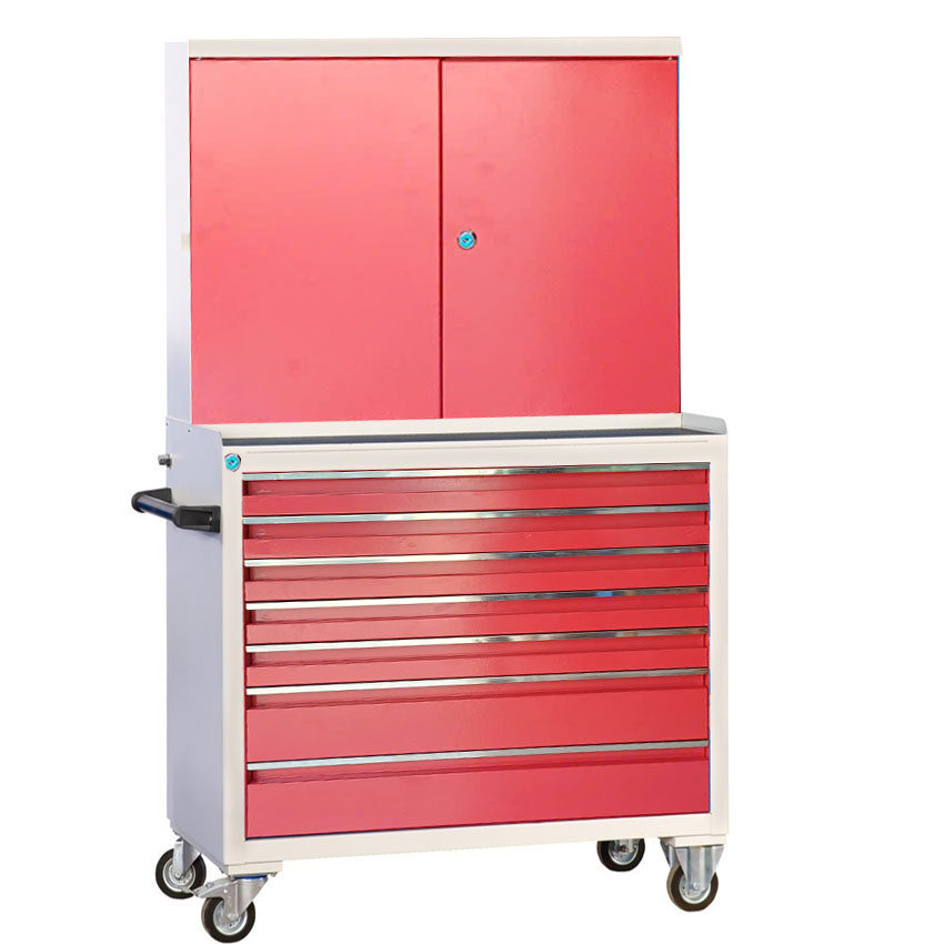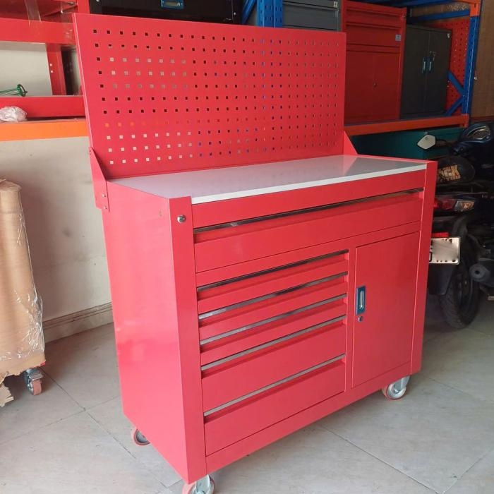 Tủ đồ nghề 7 ngăn kết hợp tủ 2 cánh có bánh xe tiện di chuyển. Đây là loại tủ đựng đồ nghề thông dụng và được sử dụng nhiều trong các tiệm sửa chữa xe máy hay trung tâm bảo dưỡng, bảo trì ô tô hoặc tại các nhà máy, xưởng sản xuất. Tủ được gia công chắc chắn và lắp rắp tại Việt Nam.