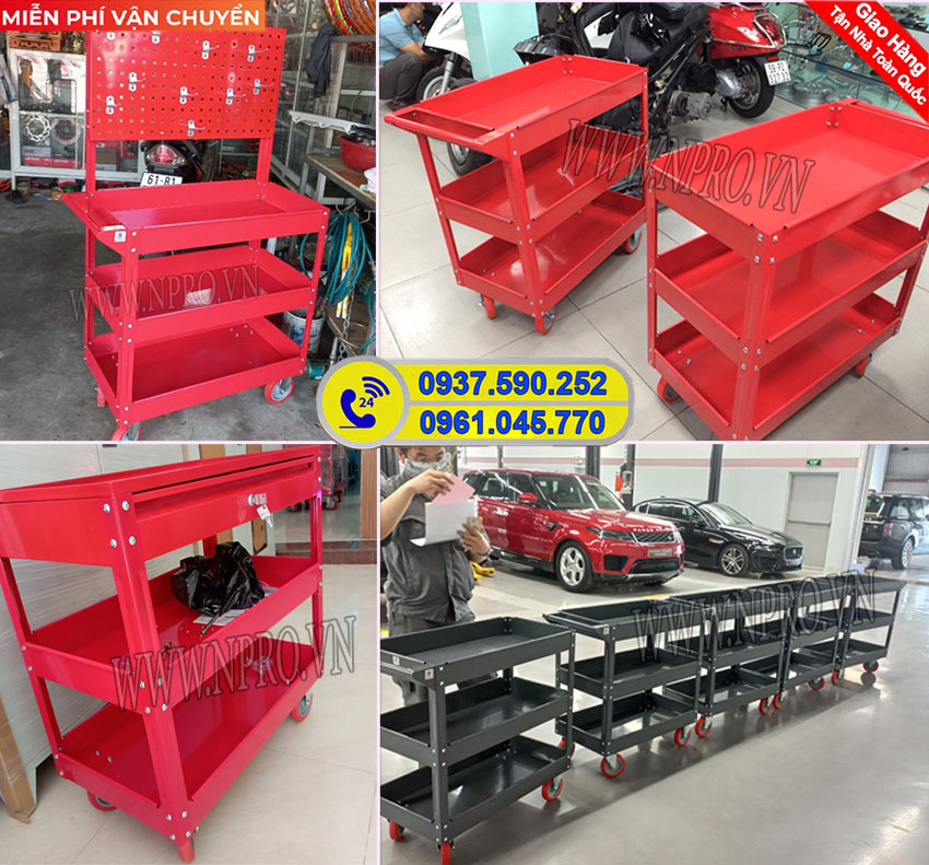Xe đẩy dụng cụđược sử dụng phổ biến trong các tiệm sửa xe máy - ô tô, xưởng gia công công cơ khí. Bởi đây là dòng tủ dụng cụ cơ bản đa năng, tiện lợi nhưng có giá thành thấp dễ đầu tư