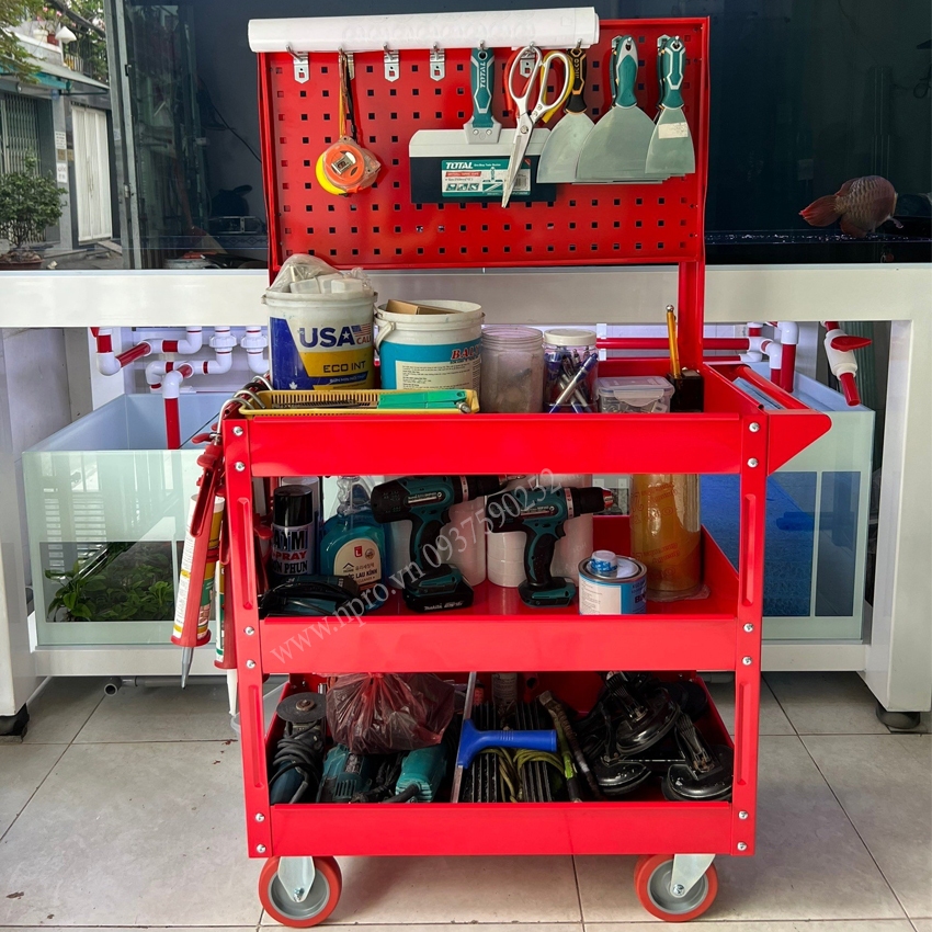 Xe đẩy 3 ngăn kết hợp các mẫu bảng treo dụng cụ