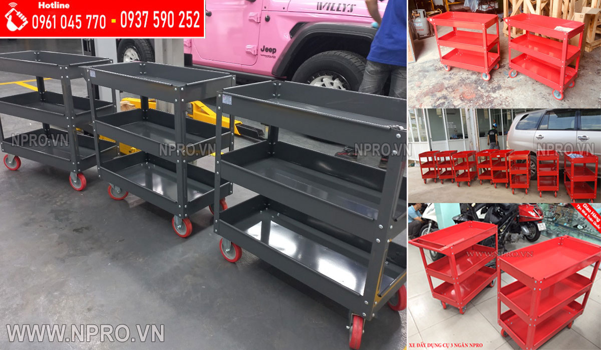 - Xe đẩy dụng cụ 3 ngăn NPRO trang bị 4 bánh linh hoạt kích thước lớn nên giúp việc di chuyển dễ dàng ở nhiều địa hình khác nhau. Đây là dòng sản phẩm được sản xuất theo tiêu chuẩn chất lượng Châu Âu và được đóng gói theo quy trình xuất khẩu. NPRO là đơn vị sản xuất và phân phối trực tiếp nên có giá thành cạnh tranh nhất.