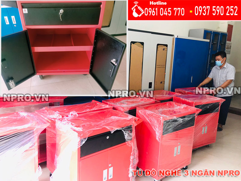 Mua tủ đựng đồ nghề sửa xe chuyên dụng trong các tiệm sửa xe, head và giả head => Liên hệ chúng tôi, NPRO.VN chuyên sản xuất, thiết kế và cung cấp các loại tủ đồ nghề giá rẻ tại HCM. Giao hàng tận nơi trên toàn quốc, miễn phí vận chuyển trong tp HCM, Hà Nội Cần tư vấn miễn phí hoặc đặt hàng, vui lòng liên hệ: Tel/zalo: Mr. Bắc (0937.590.252 ) - Mr. Nam( 0961.045.770) Website: www.npro.vn Gmail: [email protected] ------------------------------------------------------------ Một số tủ đựng đồ nghề xe máy, ô tô tại NPRO để bạn tham khảo 1. Xe đẩy đựng dụng cụ 3 ngăn Đây là dạng cơ bản của tủ đựng đồ nghề với thiết kế đơn giản, tải trọng lên đến 150kg, có bánh xe di chuyển và có giá lại thấp dễ dàng đầu tư.2. Tủ đồ nghề kết hợp ngăn kéo và mở cánh