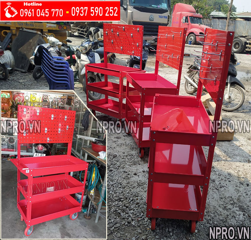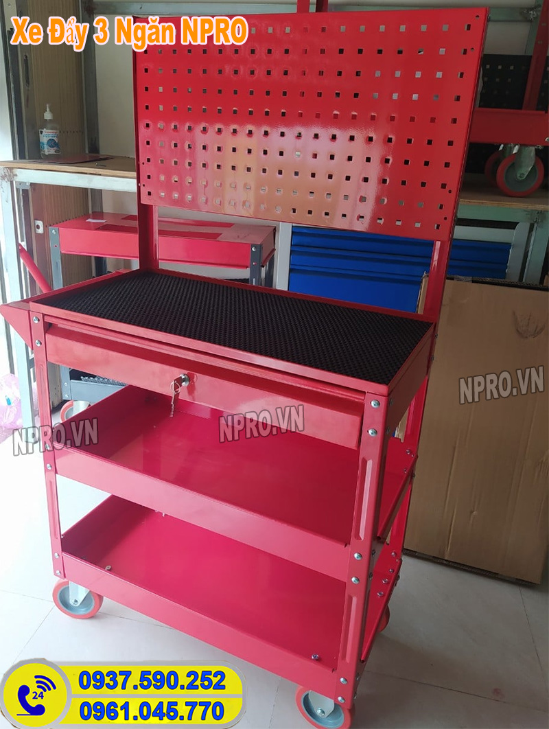 Xe đẩy, tủ đựng đồ nghề 3 ngăn sơn tĩnh điện di động tại NPRO. VN với thiết kế, mẫu mã đa dạng và tiện lợi. Gồm 3 ngăn chính chứa đồ nghề, nhưng khả năng đựng lớn, sức chịu tải150kg. có nhiều sản phẩm được trang bị thêm bảng treo dụng cụ hay 1 ngăn khóa kéo.