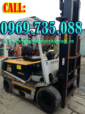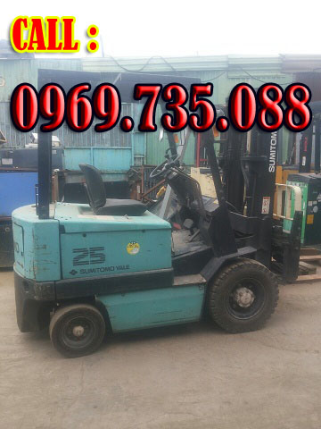 Hiệu Sumitomo – Japan (2.5 tấn – 3m) Tải trọng nâng: 2500Kg Chiều cao nâng: 3000mm Chiều dài càng: 900mm Chiều cao xe: 2250mm Chiều dài xe (có càng): 2300mm Chiều rộng xe: 1100mm Xuất xứ: Japan Chất lượng mới 70-80 % Xe được tân trang trước khi giao hàng. Bảo hành: 12 tháng; riêng vât tư tiêu hao: ắc quy, mạch điện, motor, bánh xe: 06 tháng.