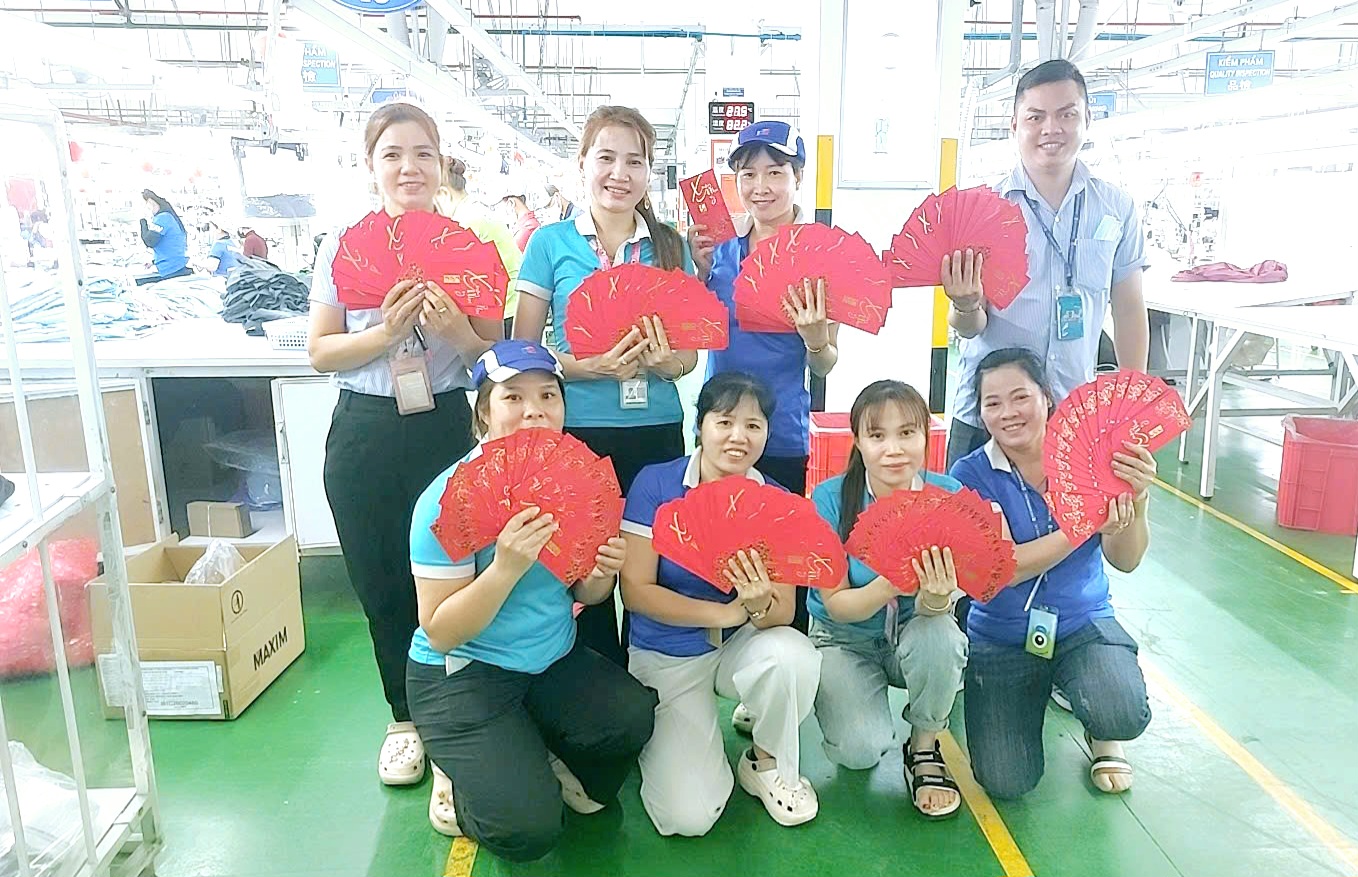 Để tạo động lực, lãnh đạo công ty và công đoàn đã trực tiếp xuống các chuyền sản xuất để thăm hỏi và trao tận tay mỗi lao động phần lì xì 300.000 đồng, phần lì xì này chỉ dành cho những công nhân đi làm đúng thời gian.