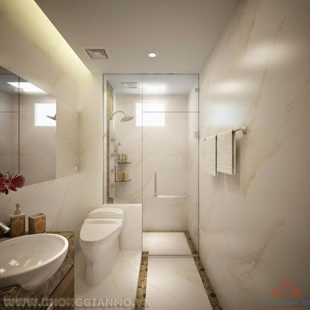 Đứng từ trong phòng ngủ ta có thể nhìn ra không gian bên ngoài phòng vệ sinh
