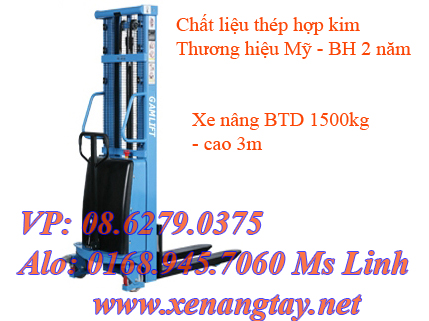Xe nâng điện bán tự động 1,5 tấn GamLift S15 là loại xe nâng được sử dụng cho mục đích nâng hàng lên cao bằng điện với giá thành rẻ và bảo trí thấp. Xe nâng Gamlift S15 được sản xuất theo tiêu chí chất lượng cao của Hoa kỳ, phốt ben được nhập trực tiếp từ Đức theo tiêu chuẩn Euro.